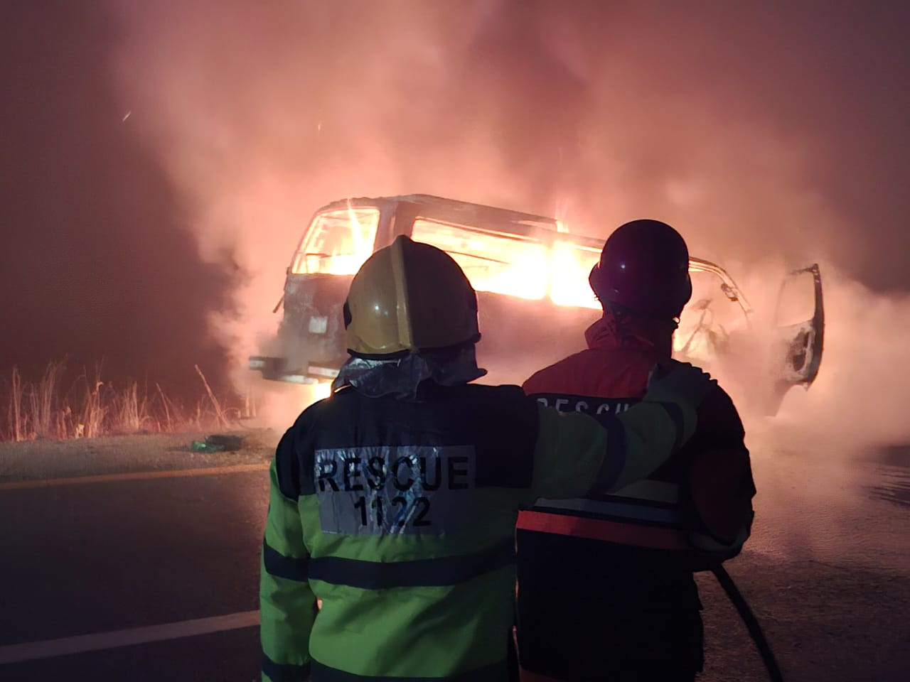 جنڈ، ہائی ایس میں شارٹ سرکٹ کے باعث آگ، ریسکیو 1122 نے بروقت کارروائی کرتے ہوئے آگ پر قابو پا لیا