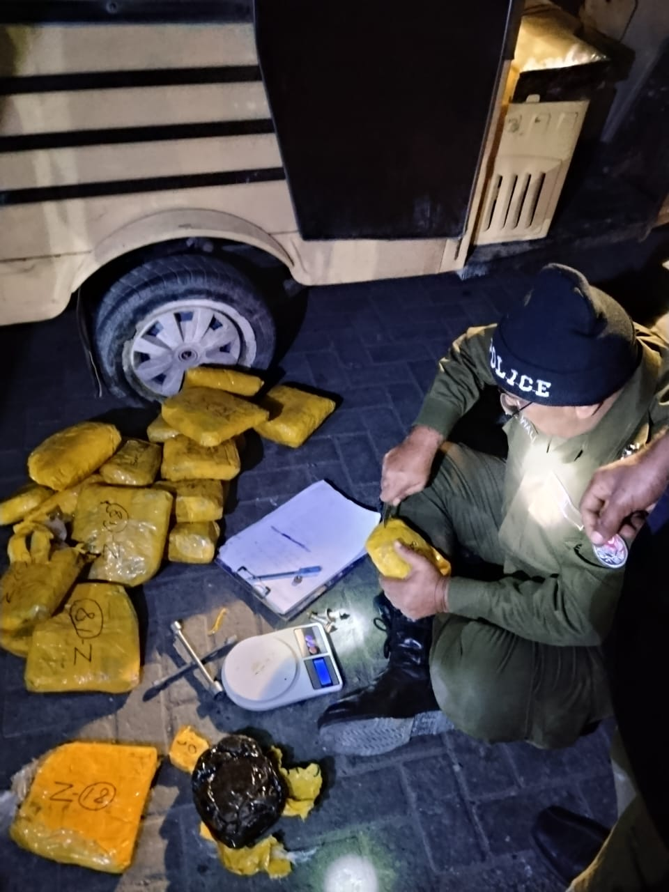 تفصیلات کے مطابق سرچ پارک اٹک خورد کے مقام پر دورانِ ناکہ بندی پولیس ٹیم نے ایک تیز رفتار رکشہ کو روک کر تلاشی لی۔ تلاشی کے دوران رکشہ کی سیٹ کے نیچے باڈی کے اندر بنائے گئے خفیہ خانے سے 23 پیکٹ چرس برآمد ہوئے، جو وزن کرنے پر 27 کلو 600 گرام چرس ثابت ہوئی،گرفتار ملزمان کی شناخت عمر ولد بنات خان سکنہ صدہ چھتپر تحصیل سنٹرل کرم ضلع کرم اور امجد علی ولد میر رحمان سکنہ اکوڑہ خٹک ترلاندی تحصیل و ضلع نوشہرہ کے نام سے ہوئی۔ ملزمان کے خلاف انسدادِ منشیات ایکٹ کے تحت تھانہ اٹک خورد میں مقدمہ درج کر کے مزید تفتیش کا آغاز کر دیا گیا ہے۔