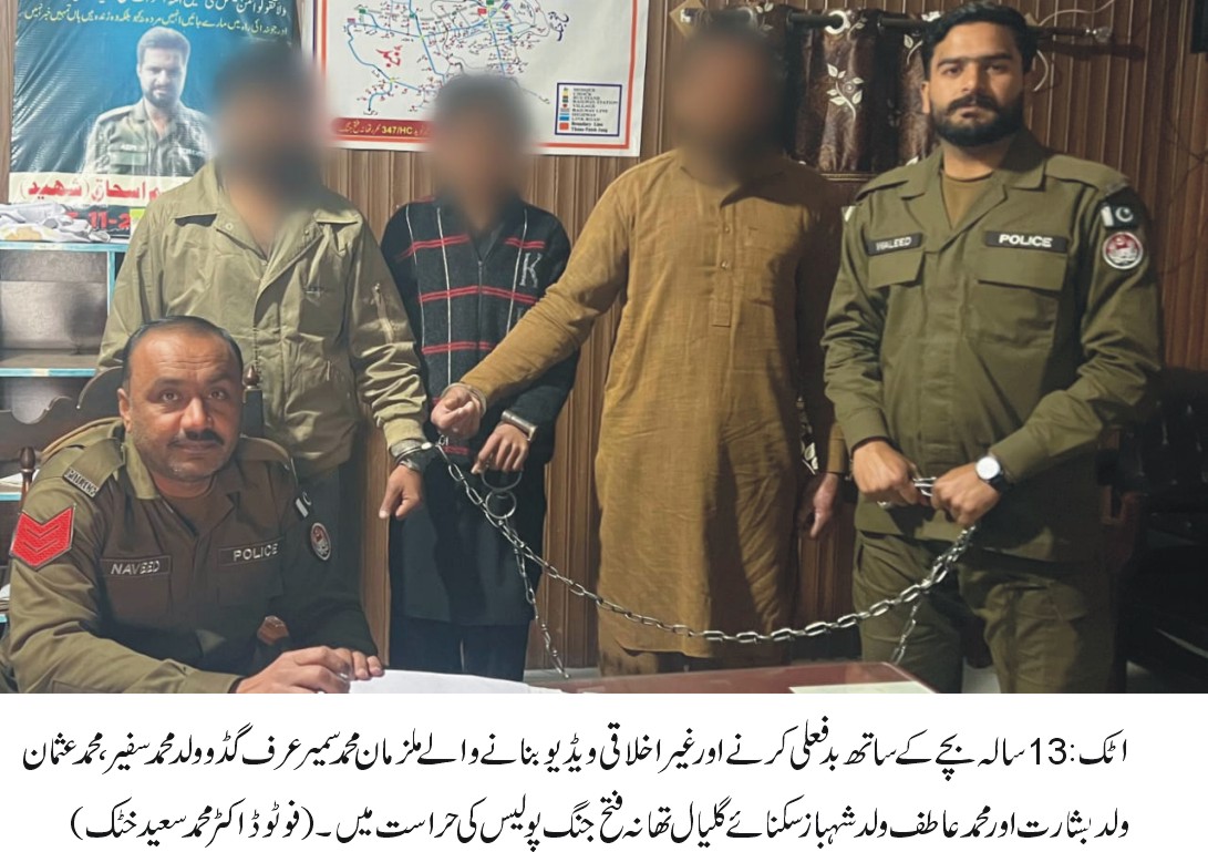 تفصیلات کے مطابق متاثرہ بچے کے والد نے جومحنت مز دوری کرتاہے تھانہ فتح جنگ میں ایف آئی آر درج کرائی ہے کہ وہ کام سے واپس آیا تواس کا…