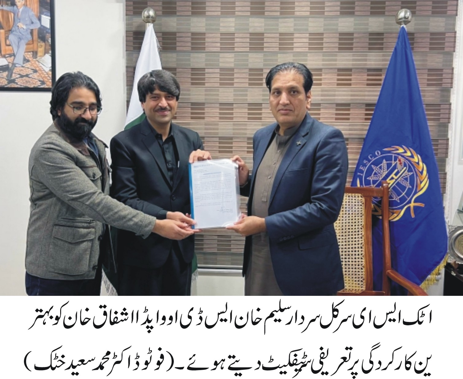 اٹک .ایس ای سرکل اٹک سردار محمد سلیم خان نے ایس ڈی او اشفاق وزیر خان کو بہترین کارگی پر اعزازی سرٹیفکیٹ سے نوازا ، ایس ڈی او اشفاق وزیر…