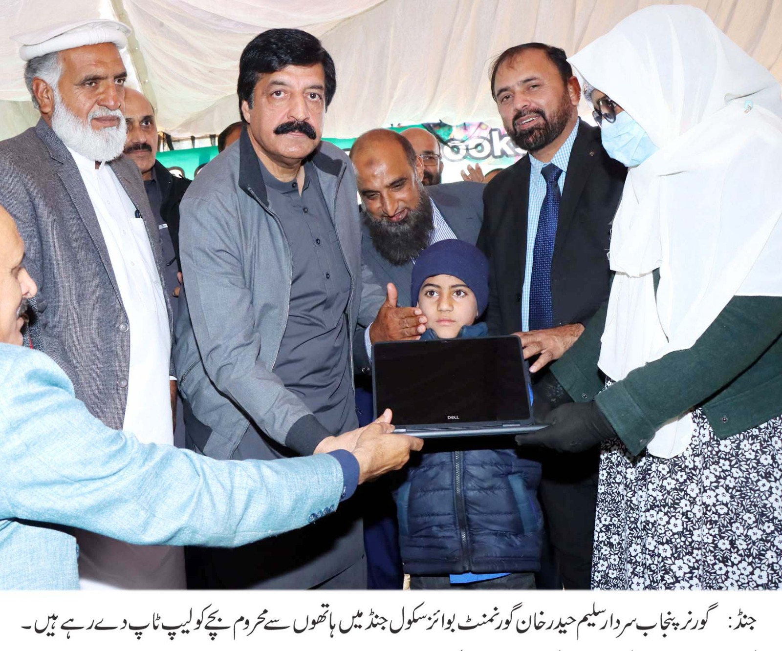 جنڈ: گورنر پنجاب سردار سلیم حیدر کی تحصیل جنڈ آمد 400 لیپ ٹاپ مختلف ہائی اور ہائیر سکینڈری سکولز کے طلبہ میں تقسیم کیے گئے۔